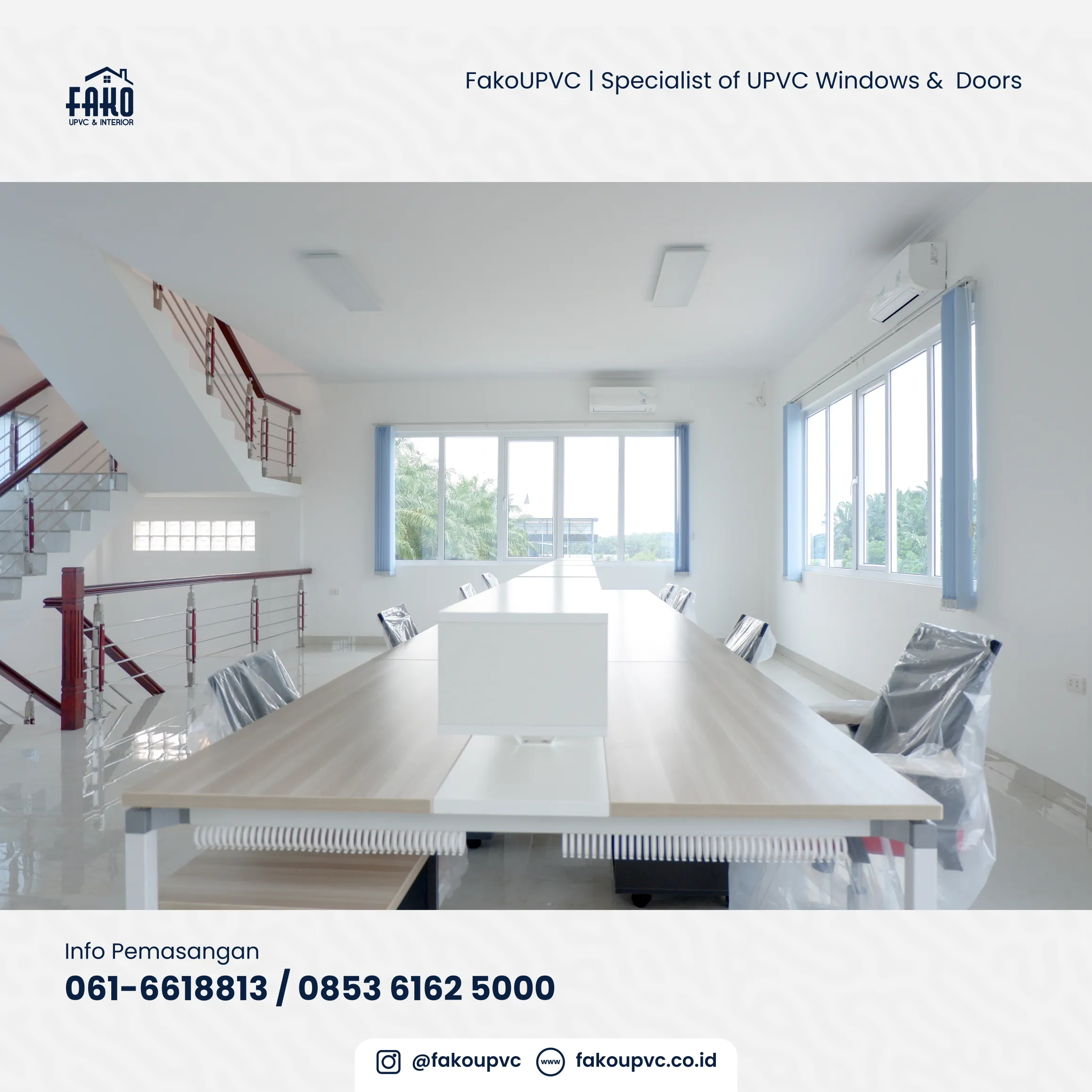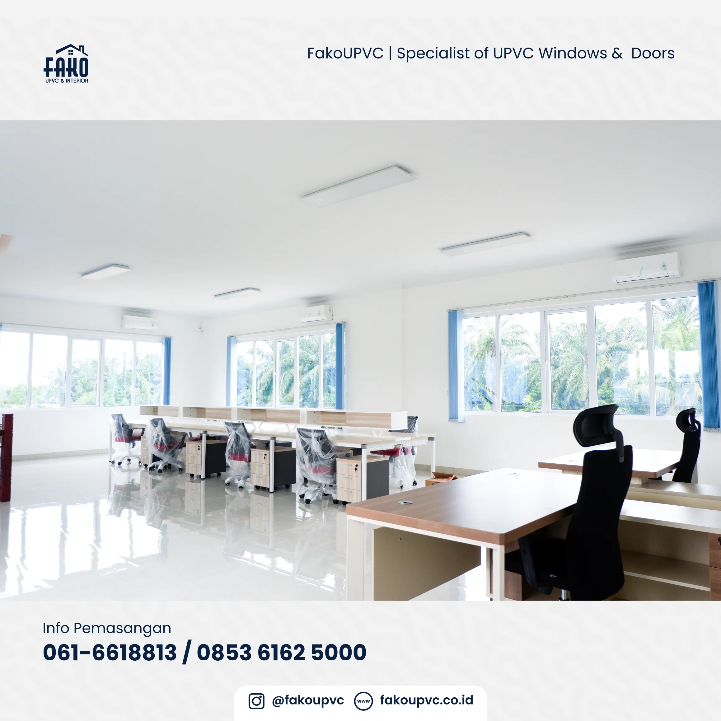Apalagi ditambah dengan material UPVC yang kedap suara. Cocok banget untuk kantor kamu